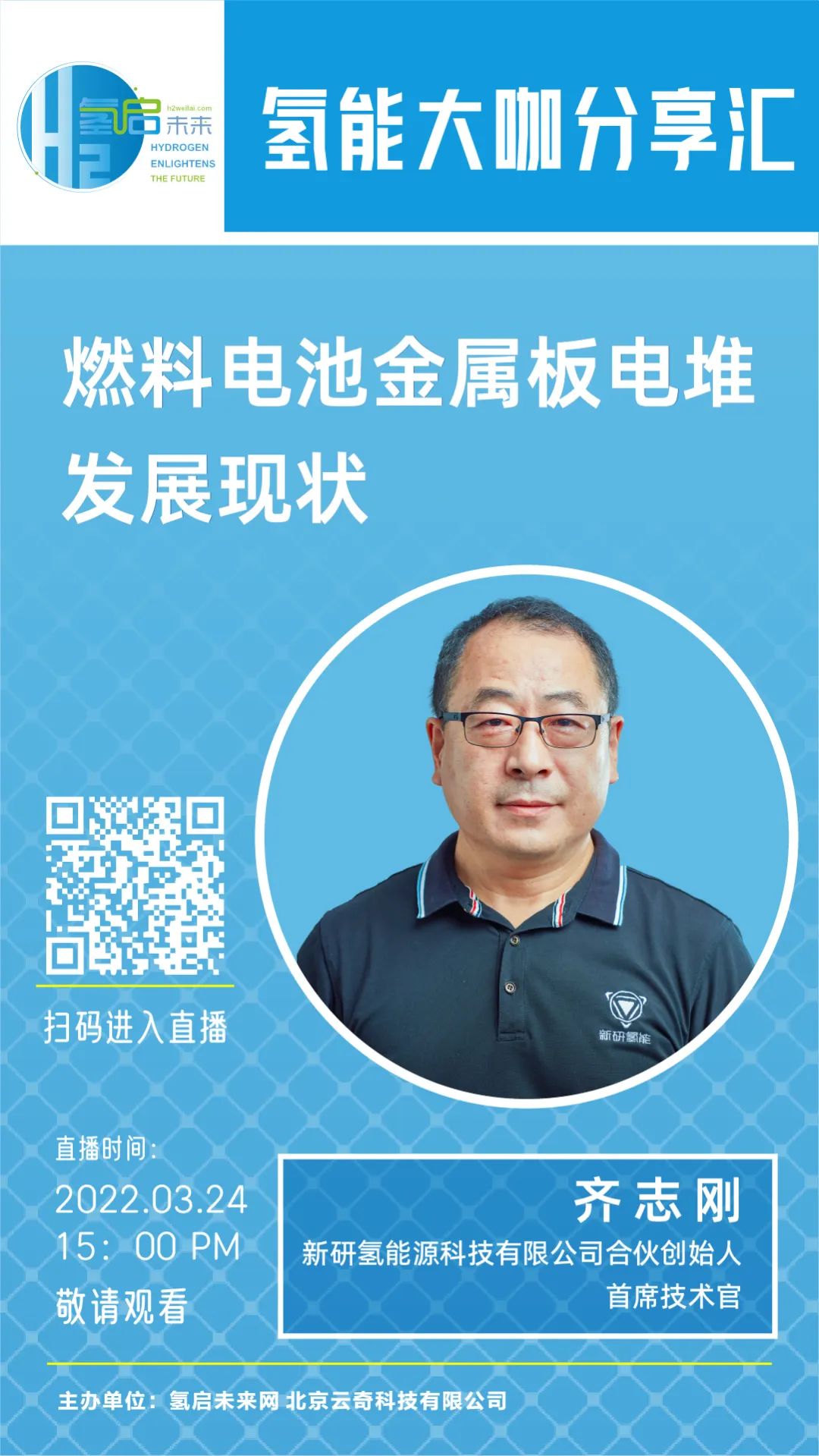 由氫啟未來網主辦的《氫能大咖分享匯》特邀新研氫能源科技有限公司合伙創始人、首席技術官齊志剛博士,將與您一起探討《燃料電池金屬板電堆發展現狀》。