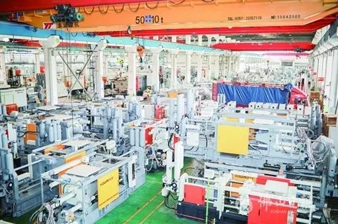 廣東伊之密精密機械股份有限公司總部車間裝配完成的壓鑄機。該公司是佛山高新區開放創新領軍企業代表之一。/佛山日報記者張弘弢攝