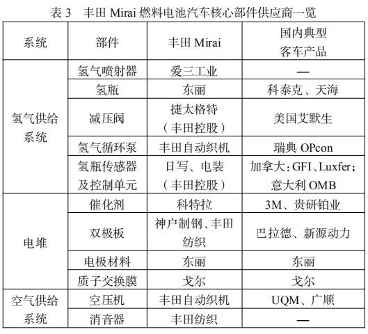 2.8 中日典型燃料電池汽車主要部件供應商對比
