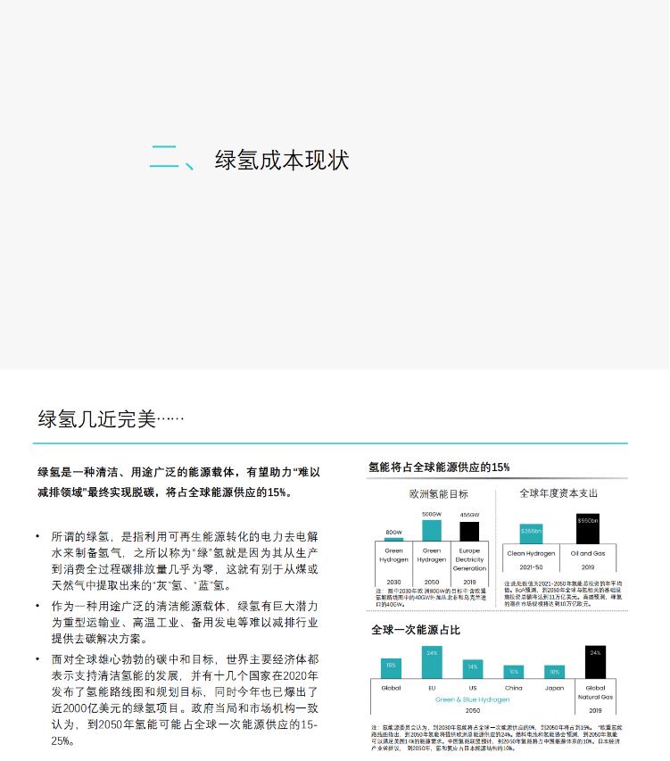 1. 綠氫的制備來源于可再生能源生產的電力,以清潔、用途廣泛為顯著特點,助力難以脫碳行業的實現去碳化,預計到2050年將占全球一次能源供應的15%。