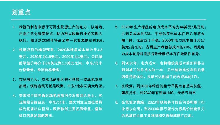8. 在氫能消費端,2020年綠氫將開始在供熱和重卡行業得以應用,到2030年很可能作為極具價格競爭力的能源在主流工業領域和交通領域推廣應用。