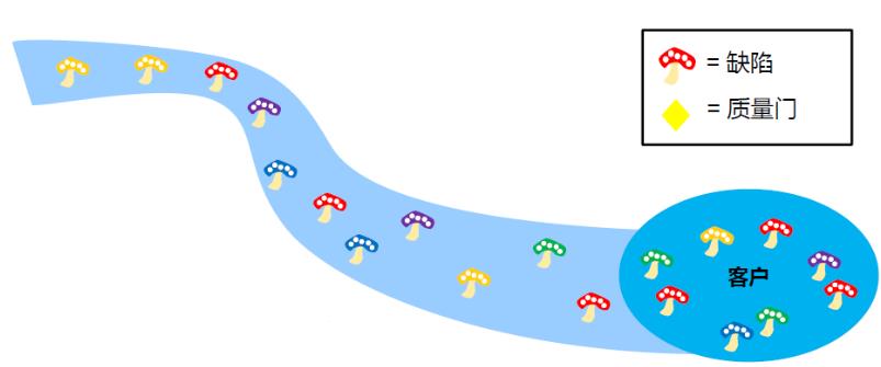 糟糕的質量管理流程:整個生產流程如一條河流各工序節點之間沒有對應控制,每道工序產生的缺陷未被識別而不斷的向后流動直至最終客戶端,客戶滿意度下降,同時問題也未得到識別和解決,導致問題越積越多。