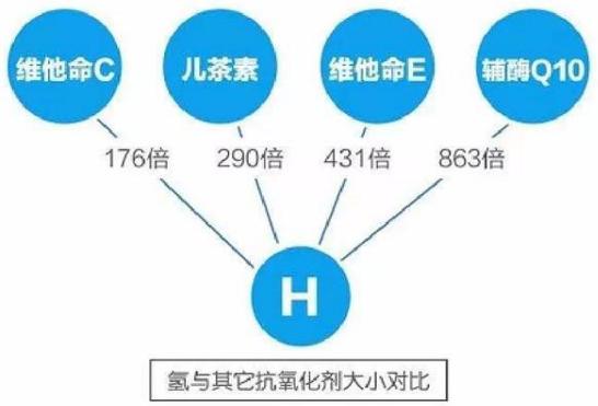 氫有超強抗氧化能力,能有效清除帶來各種肌膚問題的活性氧自由基,在細胞層面將之轉化為水。氫的抗氧化能量是輔酶Q10的863倍、兒茶素的290倍、維他命C的176倍、維他命E的431倍、多酚類221倍。無論是Q10、維C等分子均比H大很多,都無法快速滲透至細胞內部,并且有服用禁忌及過量的副作用,而氫則無任何副作用。