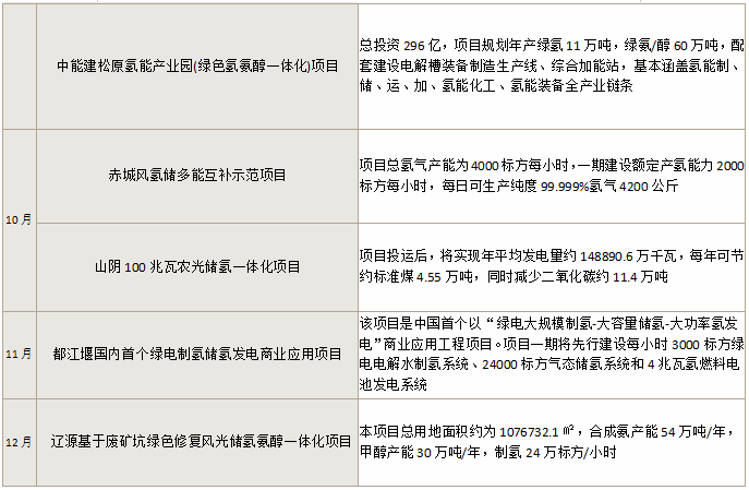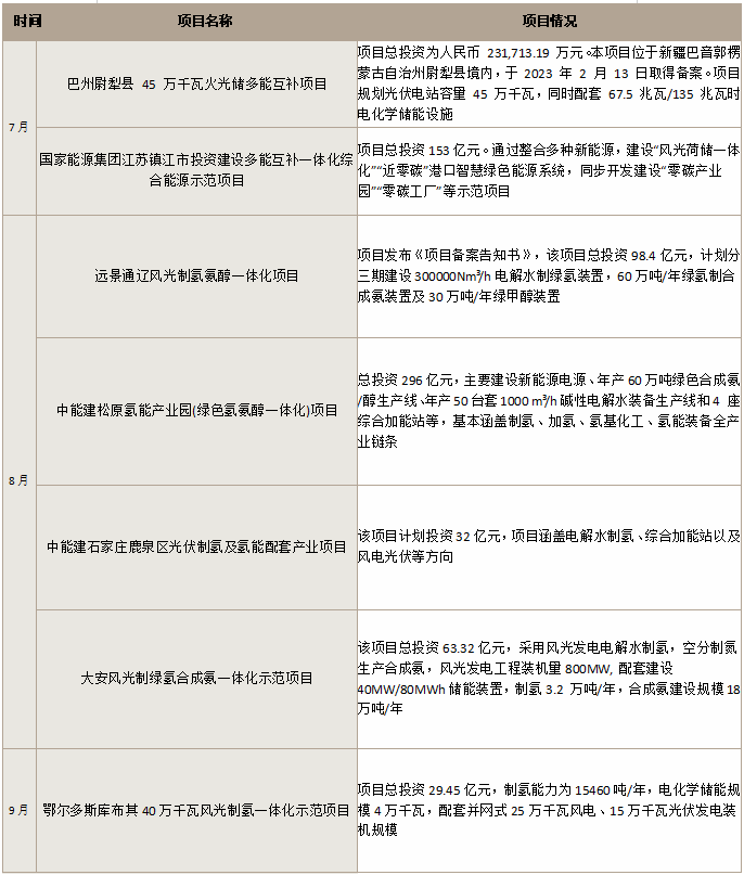 據氫啟未來網不完全統計,2023年下半年有以下風光氫儲一體化項目:
