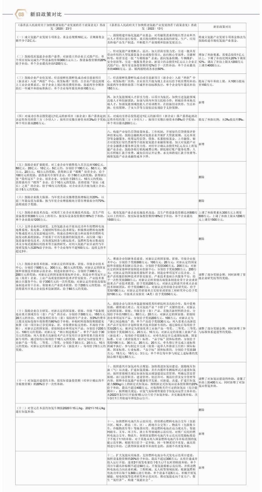 《嘉善縣人民政府關(guān)于加快推進(jìn)氫能產(chǎn)業(yè)發(fā)展的若干政策意見》善政發(fā)〔2020〕23號(hào) | 《嘉善縣人民政府關(guān)于加快推進(jìn)氫能產(chǎn)業(yè)發(fā)展的若干政策意見》善政發(fā)〔2022〕13號(hào) | 新舊政策對(duì)比 |
