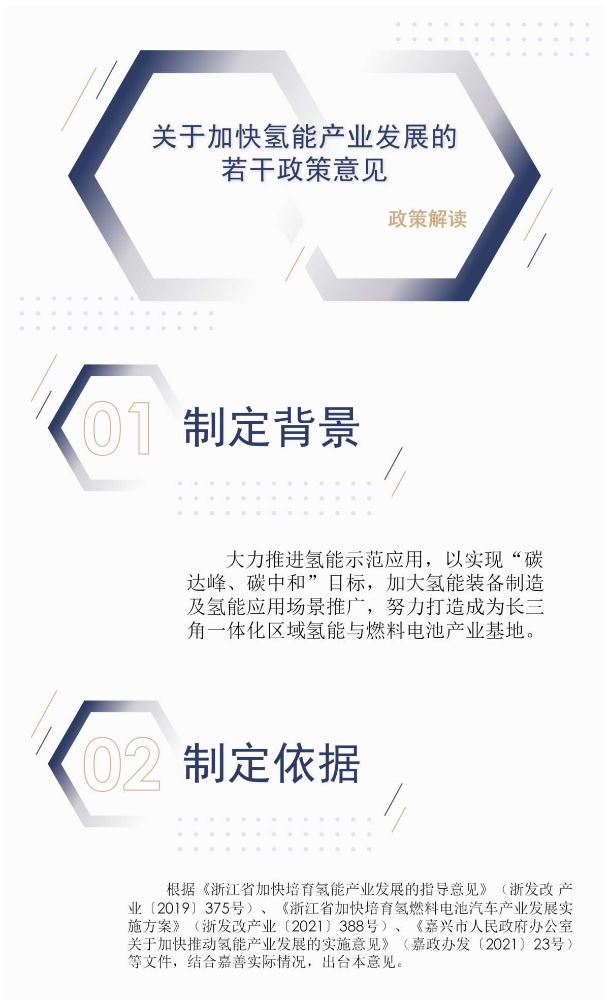 根據(jù)《浙江省加快培育氫能產(chǎn)業(yè)發(fā)展的指導(dǎo)意見》(浙發(fā)改 產(chǎn)業(yè)〔2019〕375號(hào))、《浙江省加快培育氫燃料電池汽車產(chǎn)業(yè)發(fā)展實(shí)施方案》(浙發(fā)改產(chǎn)業(yè)〔2021〕388號(hào))、《嘉興市人民政府辦公室關(guān)于加快推動(dòng)氫能產(chǎn)業(yè)發(fā)展的實(shí)施意見》(嘉政辦發(fā)〔2021〕23號(hào))等文件,結(jié)合嘉善實(shí)際情況,出臺(tái)本意見。