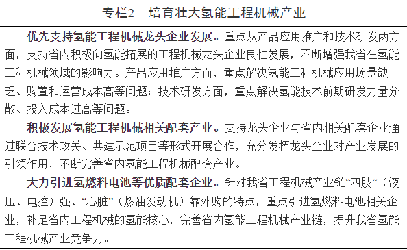省內工程機械行業氫動力化有望形成新增長點。雙碳背景下,工程機械行業動力電氣化、氫能化轉型勢在必行。隨著省內龍頭企業加大氫動力工程機械尤其是氫燃料電池發動機研發力度,憑借我省世界級工程機械產業集群優勢,將有可能形成新的經濟增長點,帶動產業實現二次騰飛。