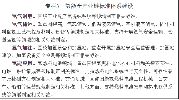 圍繞氫能制備、儲存、運輸、加注、應用等全產業鏈環節,加快推進相關標準研制,建立健全涵蓋氫能全產業鏈環節的標準體系。重點推動氫氣提純、儲存、運輸、加氫站建設和運行、燃料電池、氫能工程機械及其他產品檢測等領域標準制訂。充分發揮我省相關標準化專業技術機構支撐作用,指導、支持我省企事業單位積極開展氫能行業及相關領域國家、行業、地方和團體標準制修訂工作,為行業發展提供標準支撐。將氫能行業標準化工作納入相關行業主管部門工作規劃和工作績效考核范疇,促進行業快速健康有序發展。