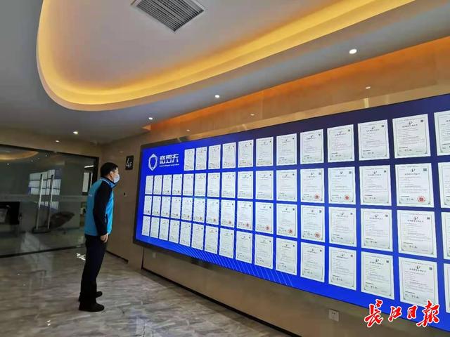 在武漢格羅夫,一段長(zhǎng)約5米的專利墻匯集了企業(yè)多項(xiàng)核心專利。長(zhǎng)江日?qǐng)?bào)記者劉睿徹 攝