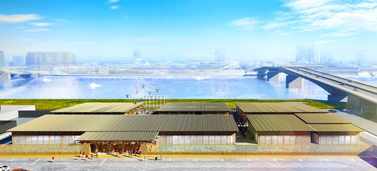 東京奧運會選手村建于一個約13公頃的填海造地的地塊上,它正對著東京的地標建筑東京灣彩虹橋。負責建設該街區的11家日本地產公司向媒體開放了展示廳。