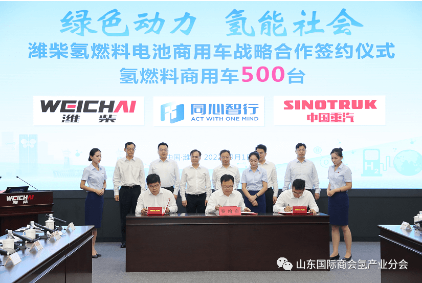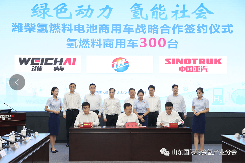 2022年9月1日上午9:00,以“綠色動力 氫能社會”為主題的濰柴氫燃料電池商用車戰(zhàn)略合作簽約儀式在山東濰坊舉行。繼8月27日200輛氫燃料電池商用車運(yùn)營交接之后,濰柴再次簽下1100輛大訂單,按下了氫燃料電池更大規(guī)模、更多場景商業(yè)化應(yīng)用的“加速鍵”。