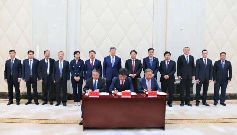通遼市委副書記、市長郭玉峰,中國投資協會能源投資專委會會長孫耀唯、中國天楹股份有限公司董事長嚴圣軍,分別代表三方簽署協議。