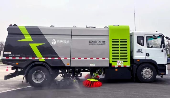 本次開展運營的車輛是由明天氫能聯(lián)合中聯(lián)重科盈峰環(huán)境、東風(fēng)商用車共同研發(fā)的18T燃料電池洗掃車。該車搭載了明天氫能公司的101kW高性能燃料電池系統(tǒng)和990L超大儲氫系統(tǒng),可以持續(xù)運行長達(dá)480km的作業(yè)續(xù)航里程。該產(chǎn)品在作業(yè)表現(xiàn)上具有凈率高和速度快的特點,并集成了路面洗掃、清掃、路沿刷洗、噴霧降塵等多種功能,實現(xiàn)了一車多用的效果。