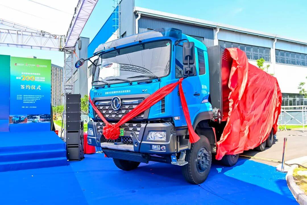 在儀式中,200輛搭載“氫騰”品牌燃料電池的氫能車輛正式交付,車型主要包括4.5噸常溫廂式貨車、4.5噸冷藏廂式貨車、18噸廂式貨車、31噸自卸車、49噸牽引車。這些車輛將服務于武漢市內城市配送、渣土倒運、大宗商品運輸等場景,拉開了氫能零碳交通在武漢規?;瘧玫男蚰?;此外,國氫科技武漢綠動氫能能源技術有限公司與東風商用車有限公司現場簽訂了200臺重卡燃料電池系統的新訂單。