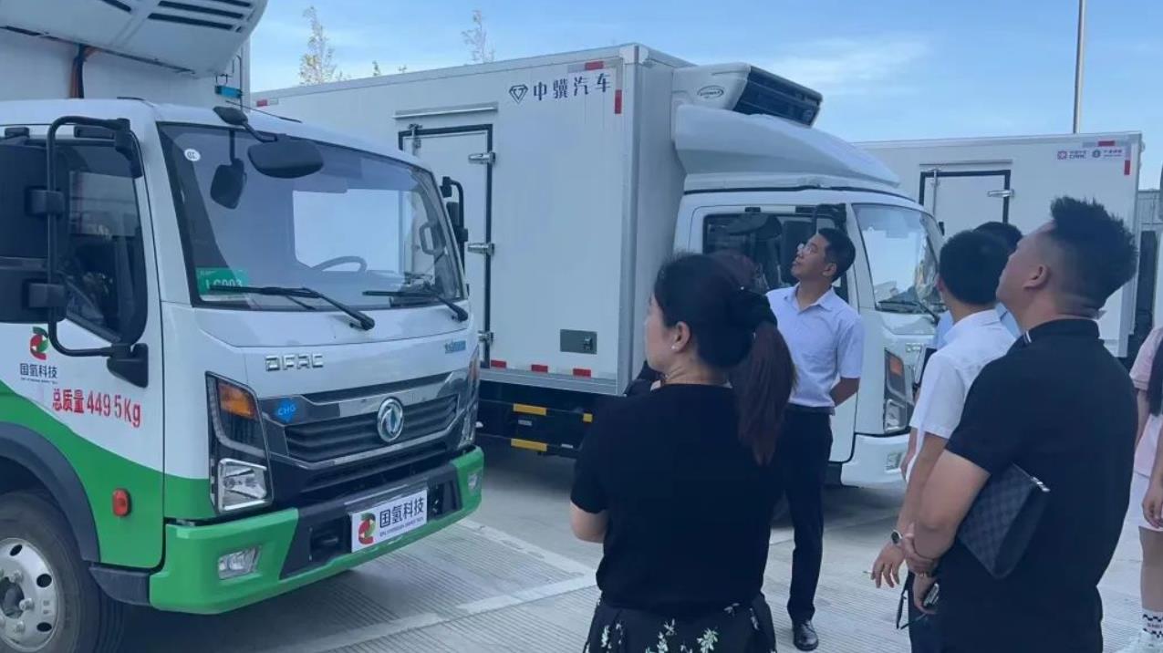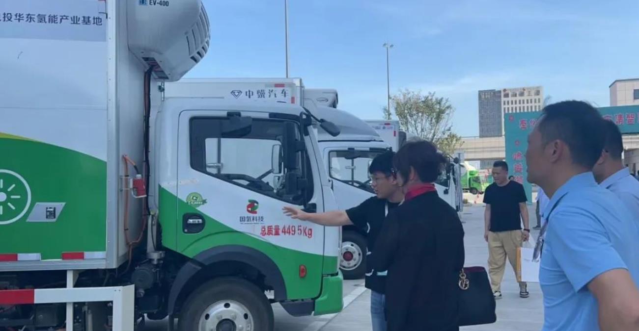 這次市集活動上,寧波菜籃子行業(yè)協(xié)會組織的相關(guān)各方展示了即將在寧波市場投放的氫能城配物流車輛。該批車輛主要包括4.5噸常溫廂式貨車和4.5噸冷藏廂式貨車,均搭載了國家電投自主研發(fā)的“氫騰”品牌燃料電池。車輛通過化學(xué)反應(yīng)產(chǎn)生電能來驅(qū)動車輛,而反應(yīng)的產(chǎn)物是水,使得整個行駛過程零排放、零污染。
