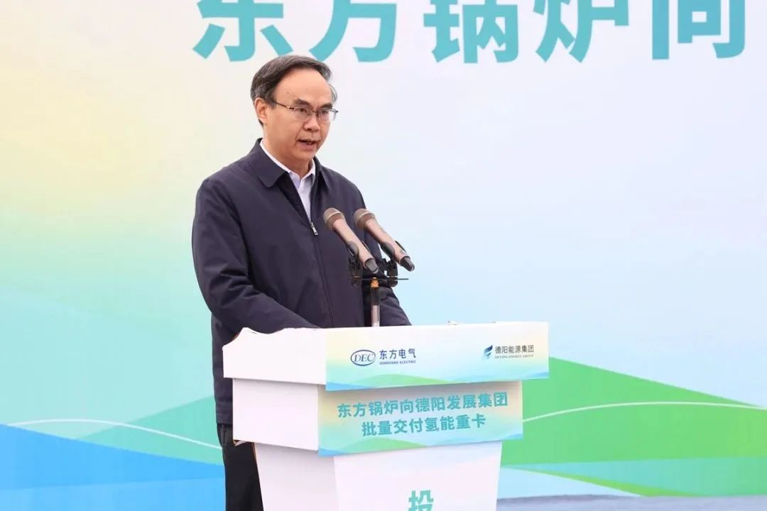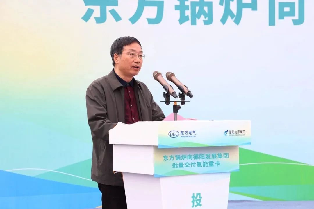 林光平在致辭中指出,此次向德陽發(fā)展集團批量交付氫能重卡,是德陽市和東方鍋爐貫徹習近平總書記視察四川時做出的“水風光氫協(xié)同發(fā)展”的重要指示精神的具體體現(xiàn),是德陽市委市政府大力支持東方鍋爐氫能裝備技術在德陽推廣示范應用的具體行動。本次東方鍋爐向德陽發(fā)展集團批量交付的氫能重卡,體現(xiàn)了德陽市委市政府和德陽發(fā)展集團對東方鍋爐氫能技術與裝備的高度認可,是德陽推進氫能先進技術與裝備應用拓展的重要里程碑。東方鍋爐深耕氫能10余年,掌握了氫獲取、氫儲存、氫加注、氫應用全產(chǎn)業(yè)鏈技術,在德陽基地建成了全球第一個氫能全產(chǎn)業(yè)技術應用示范園。東方鍋爐將在德陽市委市政府的支持下,加強與氫能產(chǎn)業(yè)鏈企業(yè)協(xié)同發(fā)展,努力為德陽建設世界級清潔能源裝備制造基地建設貢獻東方鍋爐的智慧與力量。