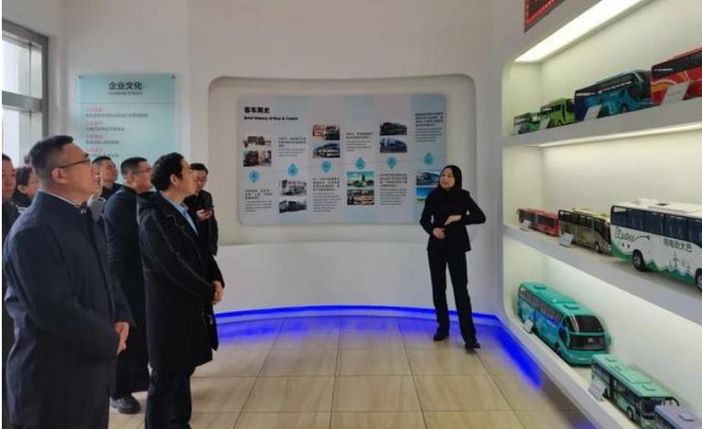 在金龍聯(lián)合汽車(chē)工業(yè)(蘇州)有限公司,考察組一行聽(tīng)取了蘇州金龍氫燃料電池卡車(chē)產(chǎn)品介紹,與公司董事長(zhǎng)陳篤廉、總經(jīng)理黃書(shū)平座談。據(jù)介紹,蘇州金龍海格氫燃料電池半掛牽引車(chē)以大功率氫燃料電池發(fā)動(dòng)機(jī)的商業(yè)應(yīng)用為目標(biāo),基于貨車(chē)運(yùn)輸重載牽引需求,研究應(yīng)用了氫燃料電池系統(tǒng)與整車(chē)集成方案;完成加氫、運(yùn)營(yíng)等氫燃料電池示范應(yīng)用工程建設(shè),是氫能源在物流運(yùn)輸領(lǐng)域的重大創(chuàng)新突破,助力行業(yè)清潔運(yùn)輸綠色轉(zhuǎn)型升級(jí)。雙方圍繞氫燃料電池汽車(chē)發(fā)展歷史、氫燃料重卡技術(shù)性能和生產(chǎn)情況、下一步發(fā)展趨勢(shì)等展開(kāi)深入交流,探討了大力發(fā)展綠色低碳運(yùn)輸背景下雙方未來(lái)合作路徑。