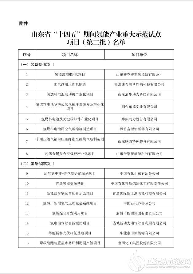 4月13日,山東省公示“十四五”期間氫能產業重大示范試點項目(第二批)評選結果。