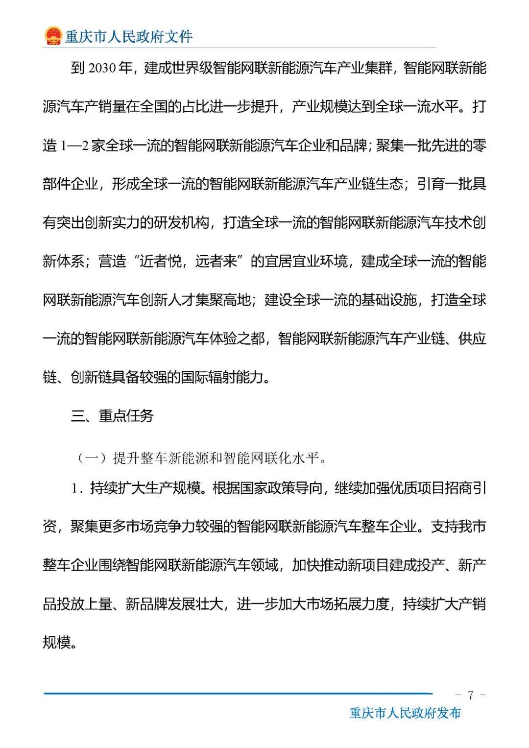 9月8日,重慶市政府發布關于印發《重慶市建設世界級智能網聯新能源汽車產業集群發展規劃(2022—2030年)》的通知(以下簡稱《規劃》)。