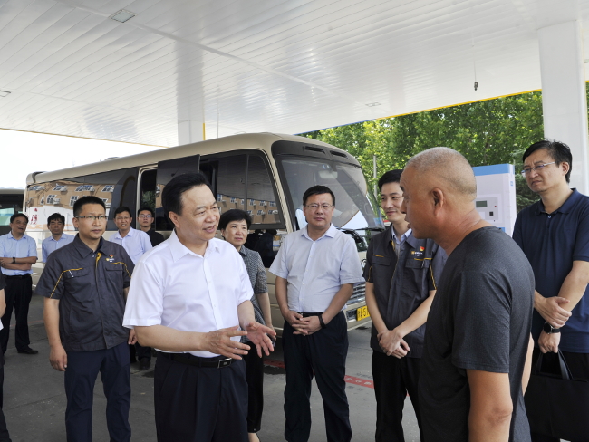 在華潤燃氣航海東路加氫站,周富強聽取加氫站規劃建設、運營管理及氫氣儲運情況的介紹,現場察看加氫作業流程,并與加氫車司機交流,詢問氫燃料電池汽車使用成本、續航里程等用車體驗。他指出,要統籌謀劃,積極推進,加快形成布局合理、覆蓋廣泛、智能高效的加氫網絡,提升氫能推廣應用成效。