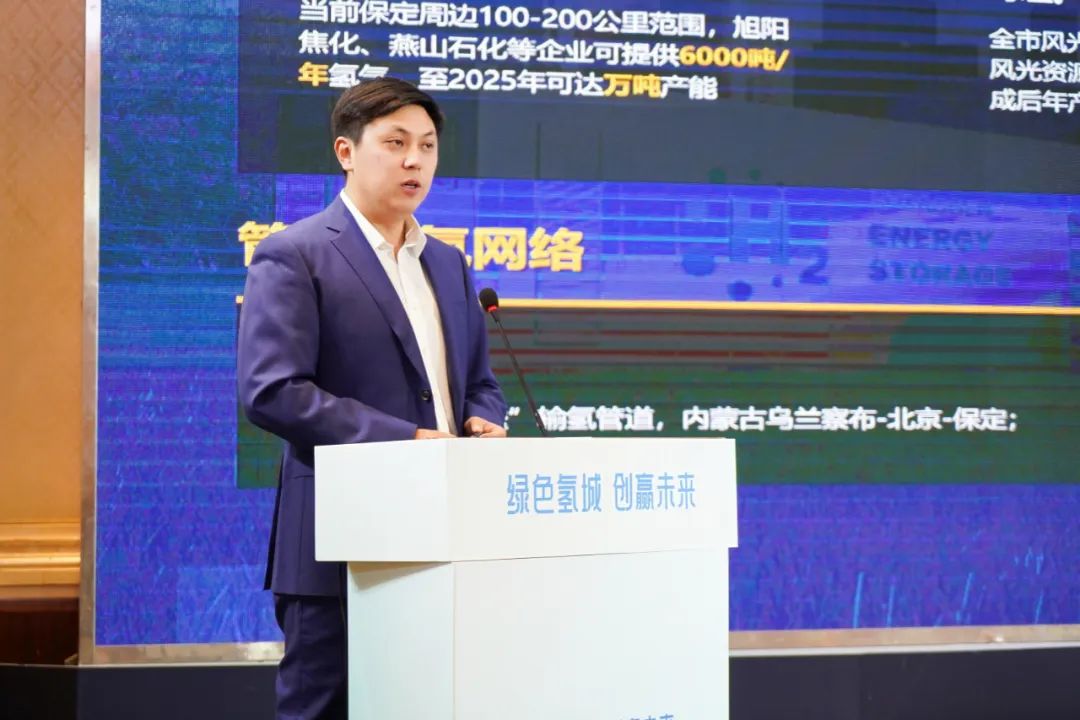 未勢能源董事長張天羽做項目匯報。他表示,在保定市委、市政府的大力支持下,現階段依托于保定良好的區位優勢、產業環境,未勢能源相繼落地了容易線全球首個百臺級氫能重卡運輸項目、國內首批氫能高速運輸項目等多個示范應用場景,初期實踐成果已逐步顯現,相信長城集團氫能產業園項目的落地,將會“鏈”動起更多產業伙伴,共同構建保定愈加完善的氫能生態鏈,共推保定氫能產業及示范應用向深、向實發展。