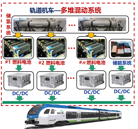 相比于燃料電池汽車使用的單堆燃料電池系統,多堆混動系統具有更高的功率和更大的儲能容量,更加適合軌道交通的應用特點。