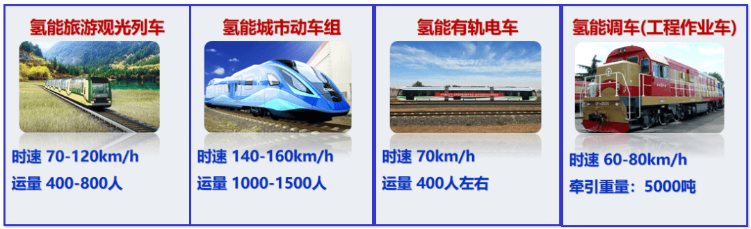 當前國外已經開始了氫能軌道交通的工程運行,主要應用在客運列車、調車機車、礦用牽引機車等場景。國內也已經研制出燃料電池有軌電車并投入商業運營。其中包括國內首輛氫燃料電池電動機車“藍天號”、世界首列氫燃料電池混合動力有軌電車和氫能源市域動車組等。
