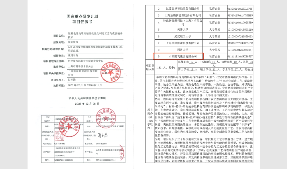 國家重點研發計劃是目前我國最高級別的研發項目,旨在解決涉及產業核心競爭力、國家整體自主創新能力和國家安全的重大科學技術問題。通過該計劃的支持,鵬飛集團成功立項了首個國家重點研發計劃項目,這不僅是對他們長期以來在氫能領域努力的認可,也是對我國氫能技術發展的重要推動。