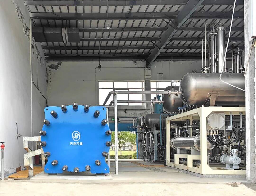 2021年,天合元氫成立。這個年輕的企業(yè)通過不斷推動創(chuàng)新,成功開發(fā)出高效能源轉(zhuǎn)化和可靠穩(wěn)定性的“天擎”系列堿性水制氫設(shè)備。并在2022年成功首臺套下線運行?!疤烨妗毕盗幸云渥吭降男阅芴攸c,實現(xiàn)了高效制取綠色氫氣,并能為實現(xiàn)新能源發(fā)電提供可靠支持;其先進的設(shè)計和工藝流程,使其具有出色的能源利用效率和可持續(xù)性,為國內(nèi)能源產(chǎn)業(yè)帶來了全新的變化,為綠色能源產(chǎn)業(yè)的發(fā)展注入了強大動力。