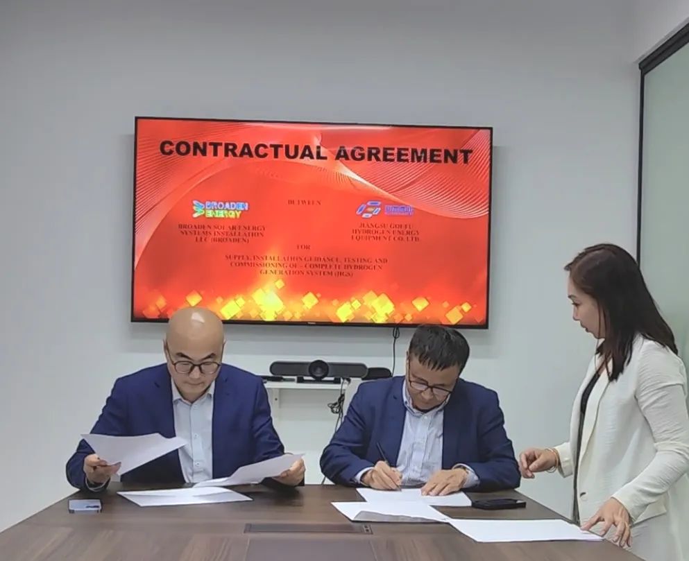阿布扎比國(guó)家石油公司經(jīng)過(guò)全球供應(yīng)商考察,國(guó)富氫能與Broaden Energy共同中標(biāo)了阿布扎比國(guó)家石油公司制氫加氫一體站項(xiàng)目,國(guó)富氫能將為一體站項(xiàng)目提供水電解制氫全套系統(tǒng)以及加氫站裝備的解決方案,并在聯(lián)合國(guó)氣候變化大會(huì)期間提供設(shè)備運(yùn)維服務(wù)。國(guó)富氫能董事長(zhǎng)鄔品芳于2023年6月22日與Broaden Energy負(fù)責(zé)人在迪拜棕櫚島會(huì)面,經(jīng)過(guò)深入交流并達(dá)成合作共識(shí),簽署了制氫加氫一體站項(xiàng)目合作的諒解備忘錄和供貨協(xié)議。