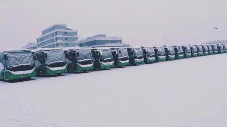 圖 |冰雪覆蓋下,嚴(yán)陣以待的宇通牌氫能客車