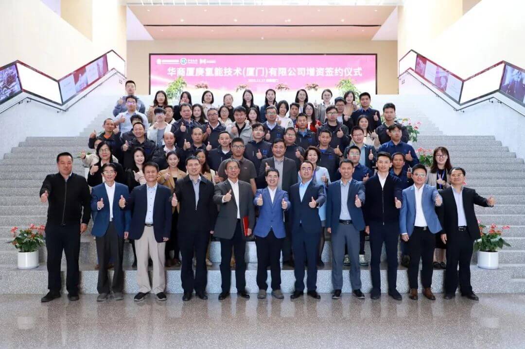 華商能源執行董事、行政總裁詹華鋒,副總裁淮增民,董事辦主任趙一楠,企業運營管理部總經理韓彬;嘉庚實驗室主任鄭南峰,嘉庚實驗室室務委員會主任、廈門大學化學化工學院院長謝兆雄,嘉庚實驗室副主任張愛強、主任助理賴日泉、重大項目部部長陳偉平、項目負責人方曉亮,副主任助理郭奇勛,副主任助理、市場戰略總監賴委舜;嘉庚實驗室技術總監、華商廈庚董事長/總經理高小平,華商廈庚副總經理田鵬及市場總監張穎、總經理助理周文楚等參加了本次儀式,共同見證這一重要時刻。