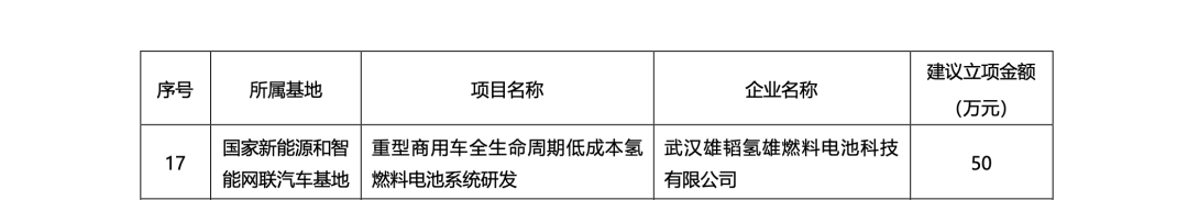 12月7日,武漢市科技局發布了《市科技局關于2023年度產業基地科技創新專項擬立項項目的公示》的通知。武漢雄韜氫雄申報的《重型商用車全生命周期低成本氫燃料電池系統研發》經產業基地所在區科技部門推薦、專家評審論證、局黨組會審議等程序,予以批準立項。