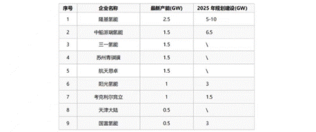 國內電解槽企業(yè)產(chǎn)能數(shù)據(jù)(GW)