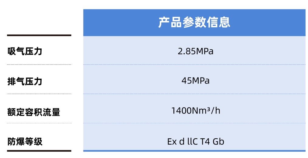該項(xiàng)目前端工藝為管道供氫,入口壓力僅為2.85MPa,經(jīng)過(guò)羿弓氫能液驅(qū)隔膜壓縮機(jī)直接兩級(jí)壓縮至45MPa,減少了傳統(tǒng)工藝方案中先通過(guò)充裝壓縮機(jī)增壓儲(chǔ)存到22MPa高壓氣瓶的工藝段,取而代之的是一套1400標(biāo)方/小時(shí)的“低入口、大排量”加氫壓縮機(jī),直接完成從管道到車輛的加氫需求。也是首次在管道供氫至高壓加氫的場(chǎng)景下,實(shí)現(xiàn)了全新的工藝方案,大大提高了整體方案的便捷性和經(jīng)濟(jì)性。羿弓氫能采用全球首創(chuàng)的“液驅(qū)+隔膜”技術(shù)方案,通過(guò)液壓泵直驅(qū)+高頻換向閥代替?zhèn)鹘y(tǒng)的曲柄連桿+活塞、皮帶傳動(dòng),為該設(shè)備具備傳統(tǒng)隔膜壓縮機(jī)的保證氣體絕對(duì)潔凈、密封性好、單級(jí)壓縮比高、散熱性能好等優(yōu)勢(shì),同時(shí)也兼?zhèn)湟候?qū)活塞式壓縮機(jī)的適應(yīng)頻繁啟停、帶載啟停、變工況運(yùn)行、可維修性好(模塊化)、可實(shí)現(xiàn)靈活串/并聯(lián)提升排氣壓力或排量等優(yōu)勢(shì),為能源島項(xiàng)目提供高效、環(huán)保、經(jīng)濟(jì)的能源解決方案。