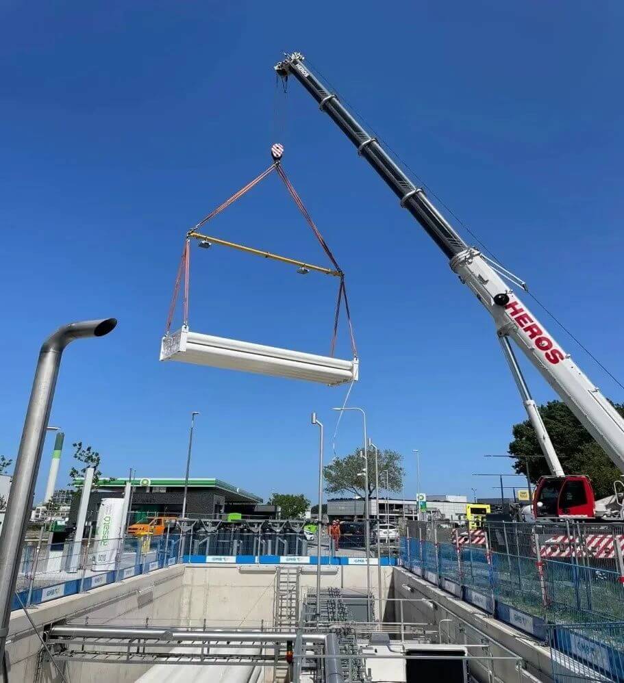 荷蘭港口城市D市陽光明媚,由浙江藍能氫能科技股份有限公司設計制造的加氫站儲氫容器組正在有條不紊的吊裝,在藍天的映照下,潔白的儲氫容器顯得格外的光彩奪目。這是歐洲第一個地下加氫站,也是浙江藍能首次設計制造符合歐洲CE/PED標準的儲氫瓶組。