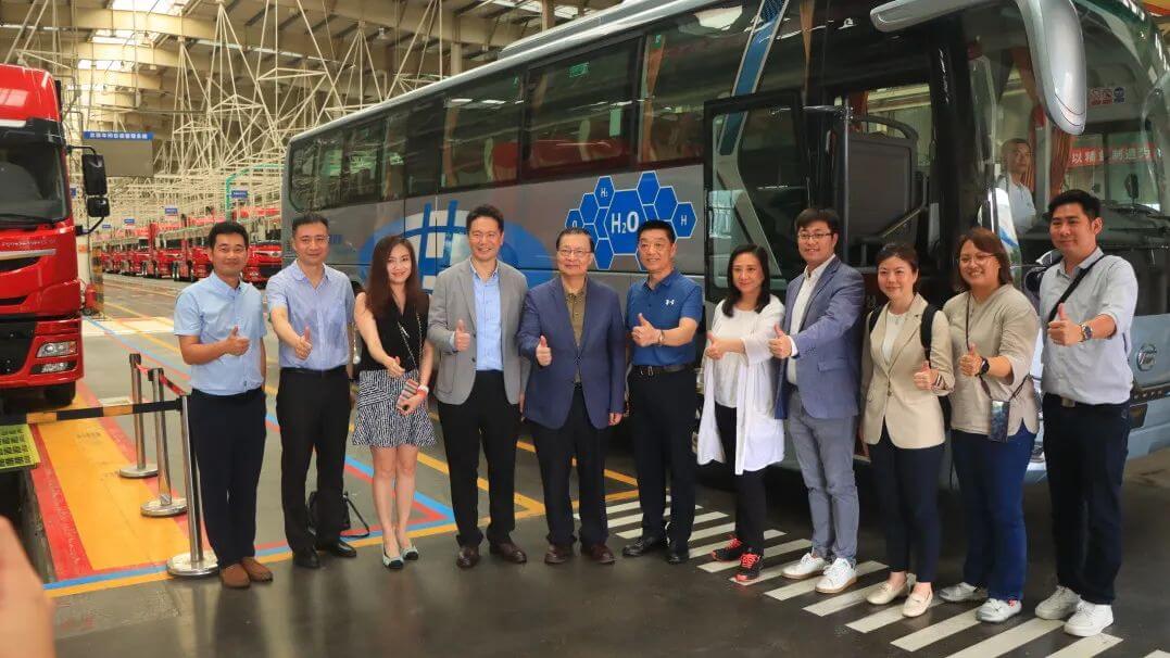 調研期間,調研團試乘飛馳科技氫能巴士,并對飛馳科技氫能巴士運行平穩、無噪音、加氫時間短、續航里程長、零排放等特點表示高度贊揚和肯定。隨后,考察團走進飛馳科技燃料電池汽車總裝車間,聽取飛馳科技領導詳細介紹了燃料電池車型的基本參數、工作原理、性能配置、運行模式、安全保障、成本對比能耗等基本情況。