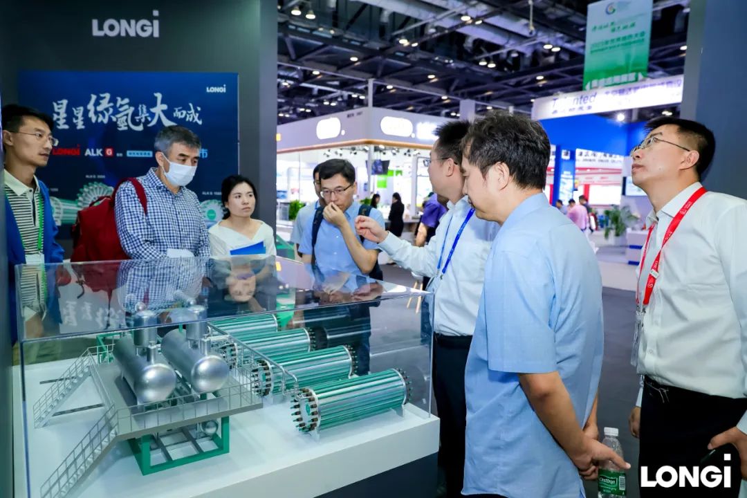 作為中國(guó)石化的戰(zhàn)略伙伴,隆基積極參與世界地?zé)岽髸?huì)裝備特裝展覽,以技術(shù)為核心,串聯(lián)起“光伏+綠氫”系統(tǒng)解決方案。其中,應(yīng)用在中國(guó)石化首個(gè)萬(wàn)噸級(jí)綠氫示范項(xiàng)目中的4對(duì)1制氫系統(tǒng)解決方案模型,一經(jīng)亮相即引發(fā)與會(huì)觀眾關(guān)注。