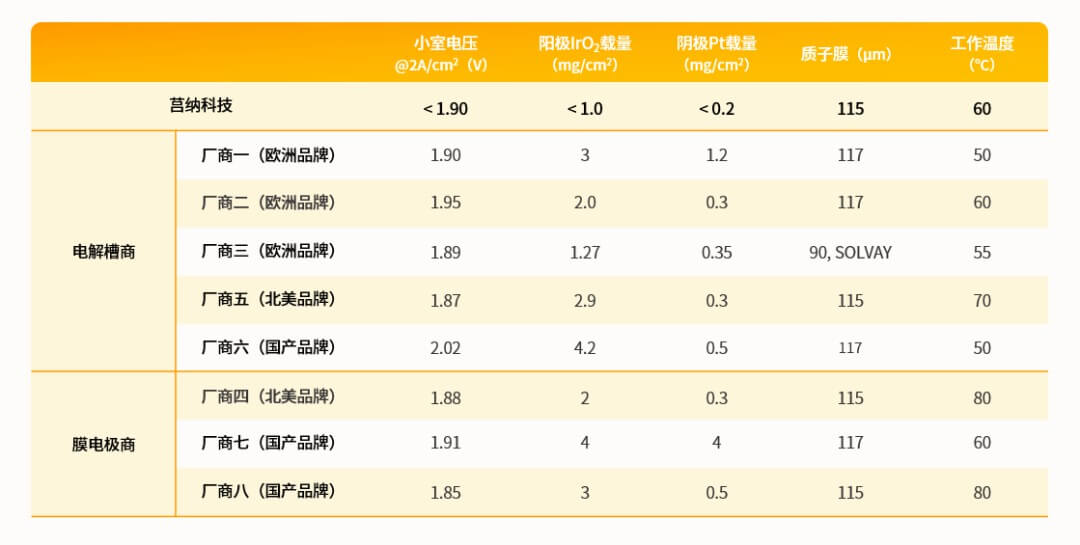 莒納科技PEM膜電極已在第三方權威機構完成樣品測試,性能在<1.9V@2A@60°C的條件下,貴金屬載量大幅降低,成本有望降低30%,預計于今年年底正式投產。